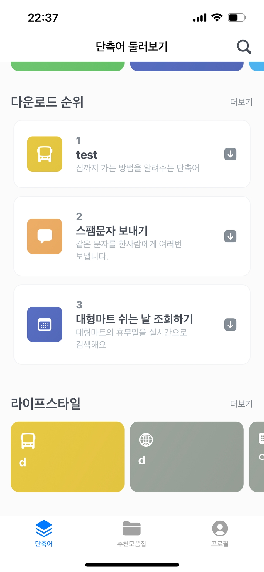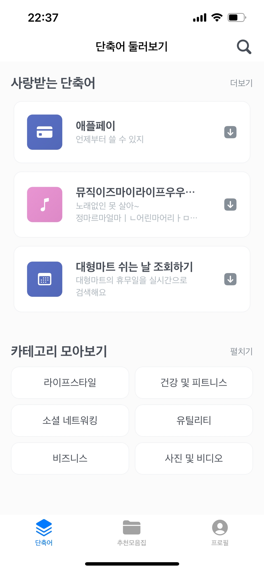 return "인기있는 단축어"