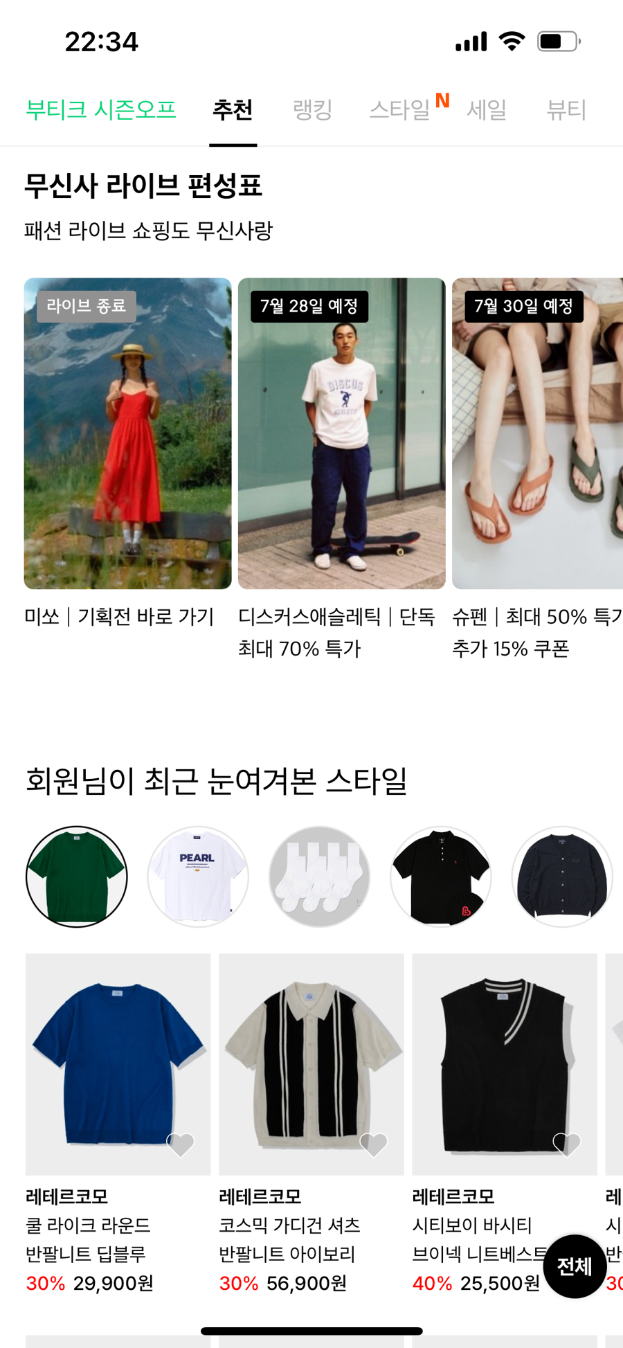 그런데, 우리가 실제로 개발할 땐 1차원 배열로 표현하기 어려운 경우가 굉장히 많다. 무신사 앱을 봐 보자. (테이블 뷰는 아님)